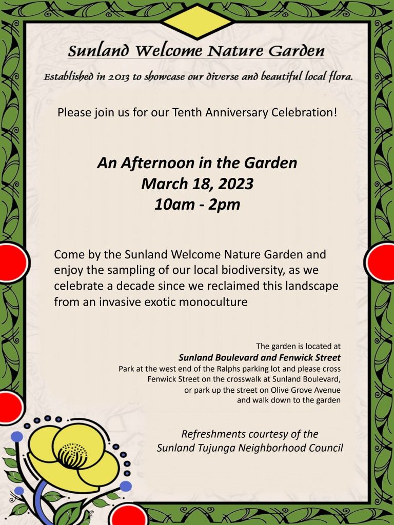 Create a garden of plants authentic to the Sunland-Tujunga area